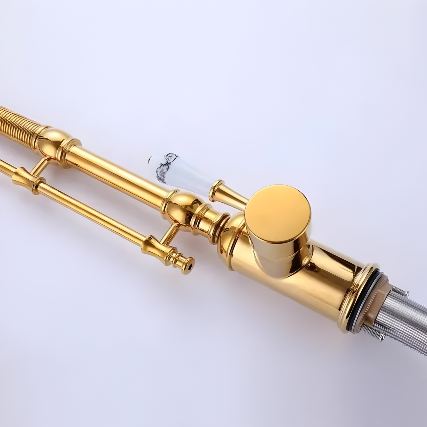 The 360° Multi-function Spring Pull Down Kitchen Faucet features a distinctive high-arc open-coil spring design that brings a professional, industrial look to home kitchens. Its dual-action system featuring a flexible pull-down sprayer and often a secondary swivel spout ensures total sink coverage, making it ideal for large double basins or workstation sinks. This high-pressure fixture delivers a versatile range of water flows that streamline food prep and cleanup while maintaining a bold, modern aesthetic.