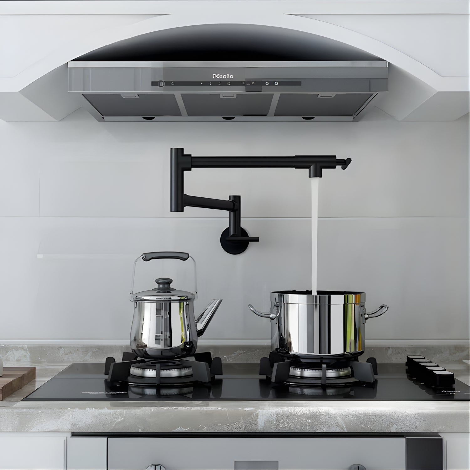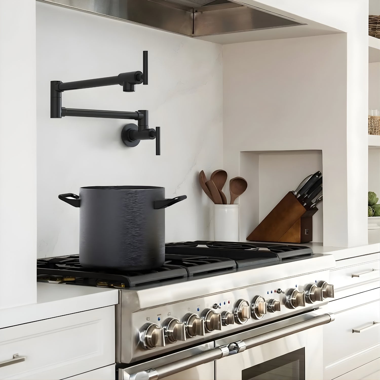 Introducing the Jorstad Wall Mounted Kitchen Faucet, a perfect blend of modern technology and exquisite design, thoughtfully created to transform your kitchen experience. This innovative pot filler is a symbol of our passion for merging sophistication with practicality, ensuring every use is both enjoyable and efficient.
