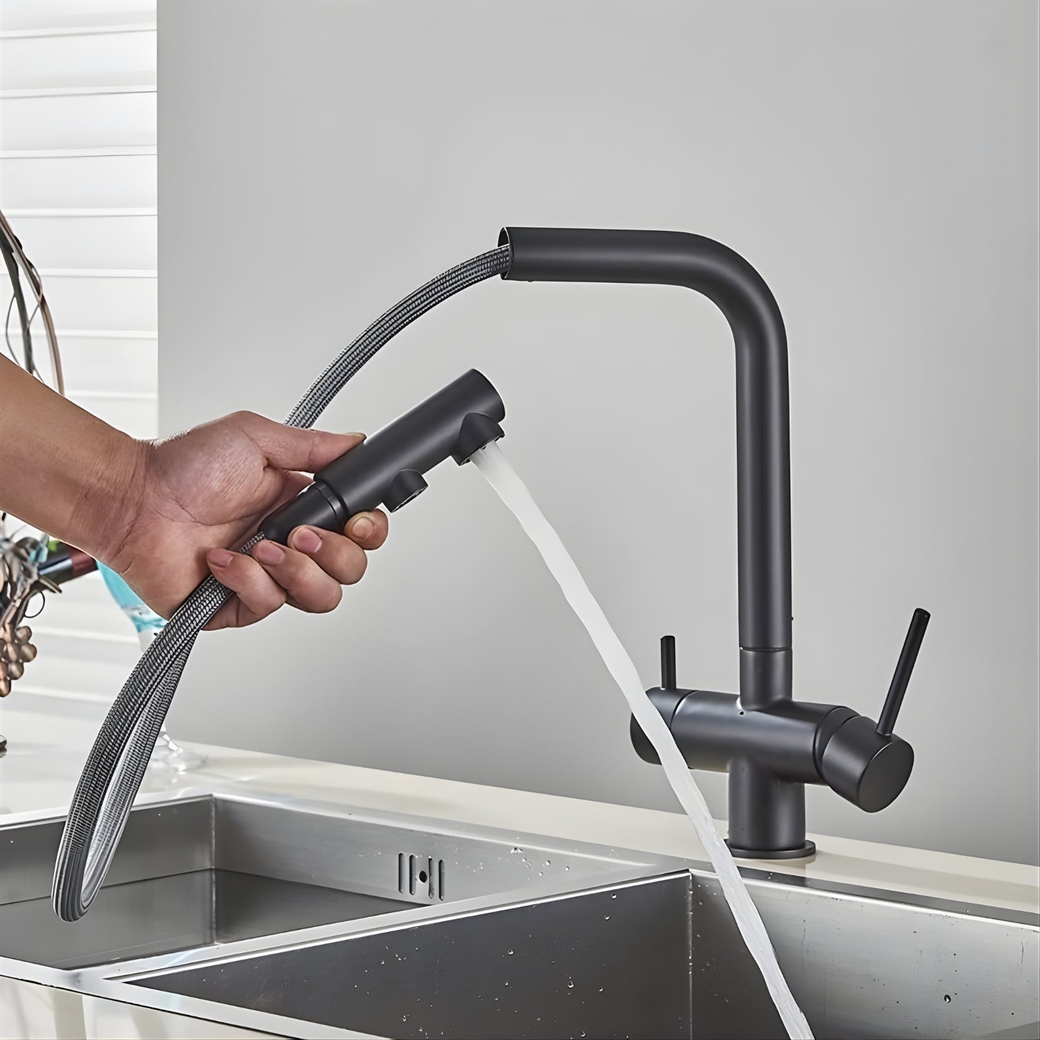 Three-Way Pull-Out Kitchen Faucet with Filter Tap Reverse Osmosis Compatible