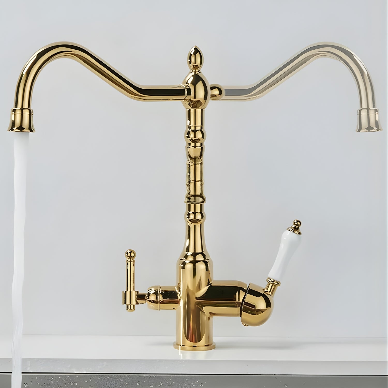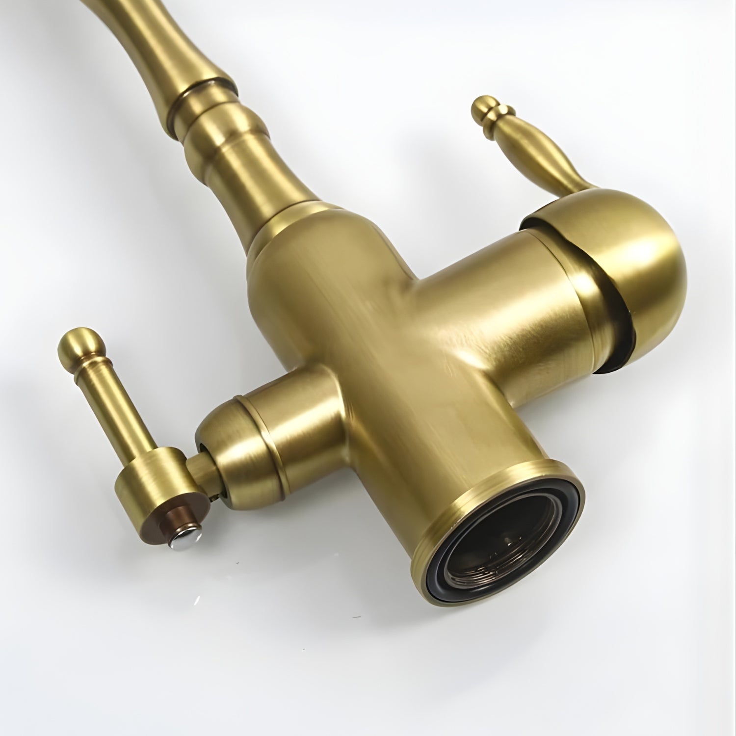 The Arvik 3-Way Faucet is more than a fixture, it's an investment in your home. Crafted with a premium antique brass finish, this deck-mounted mixer is engineered to withstand the rigors of a busy kitchen while maintaining its stunning vintage luster year after year.