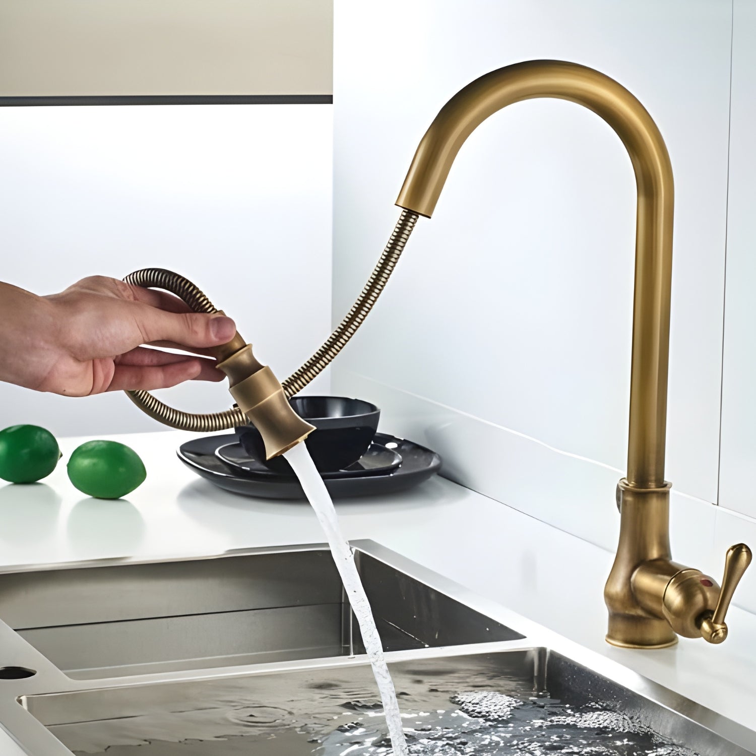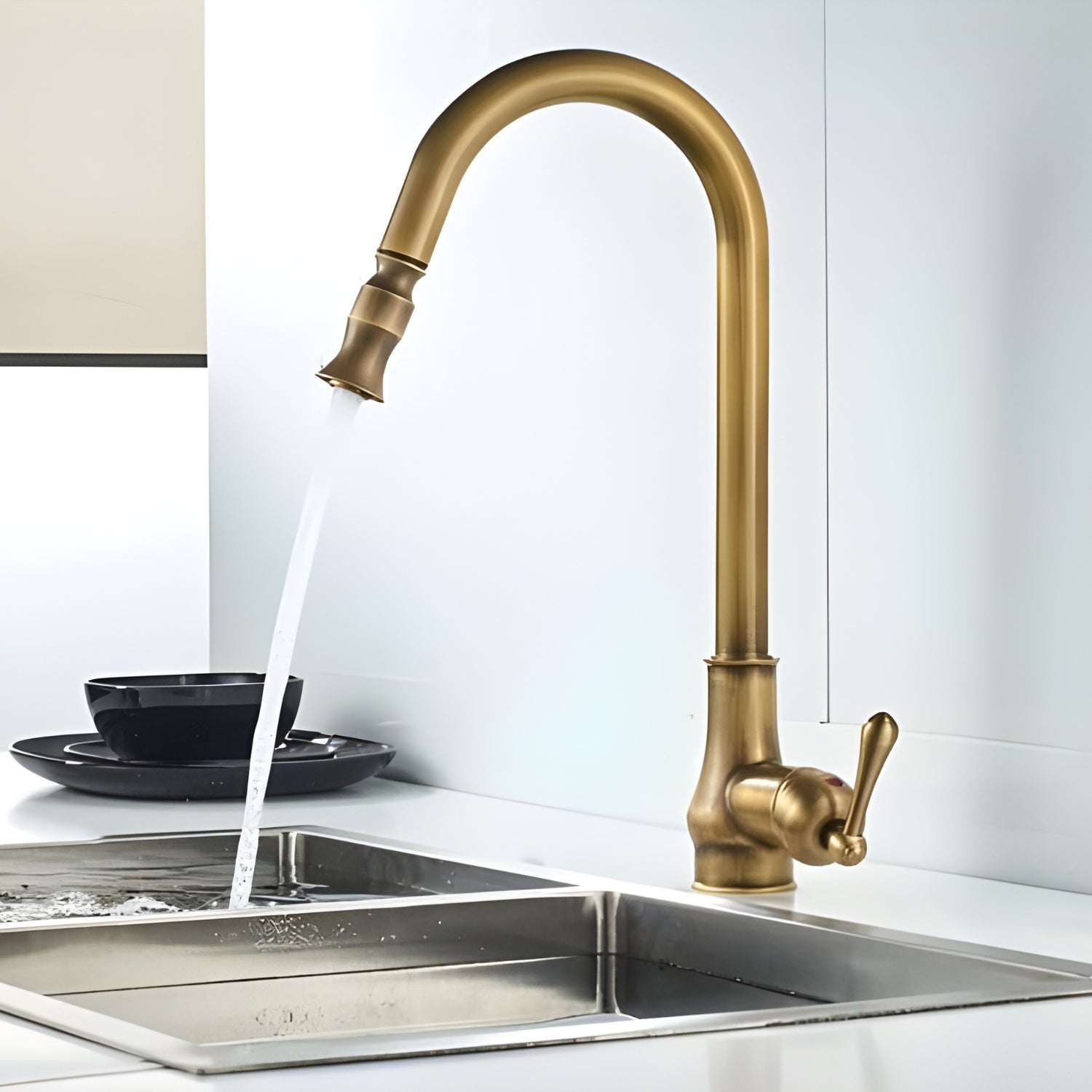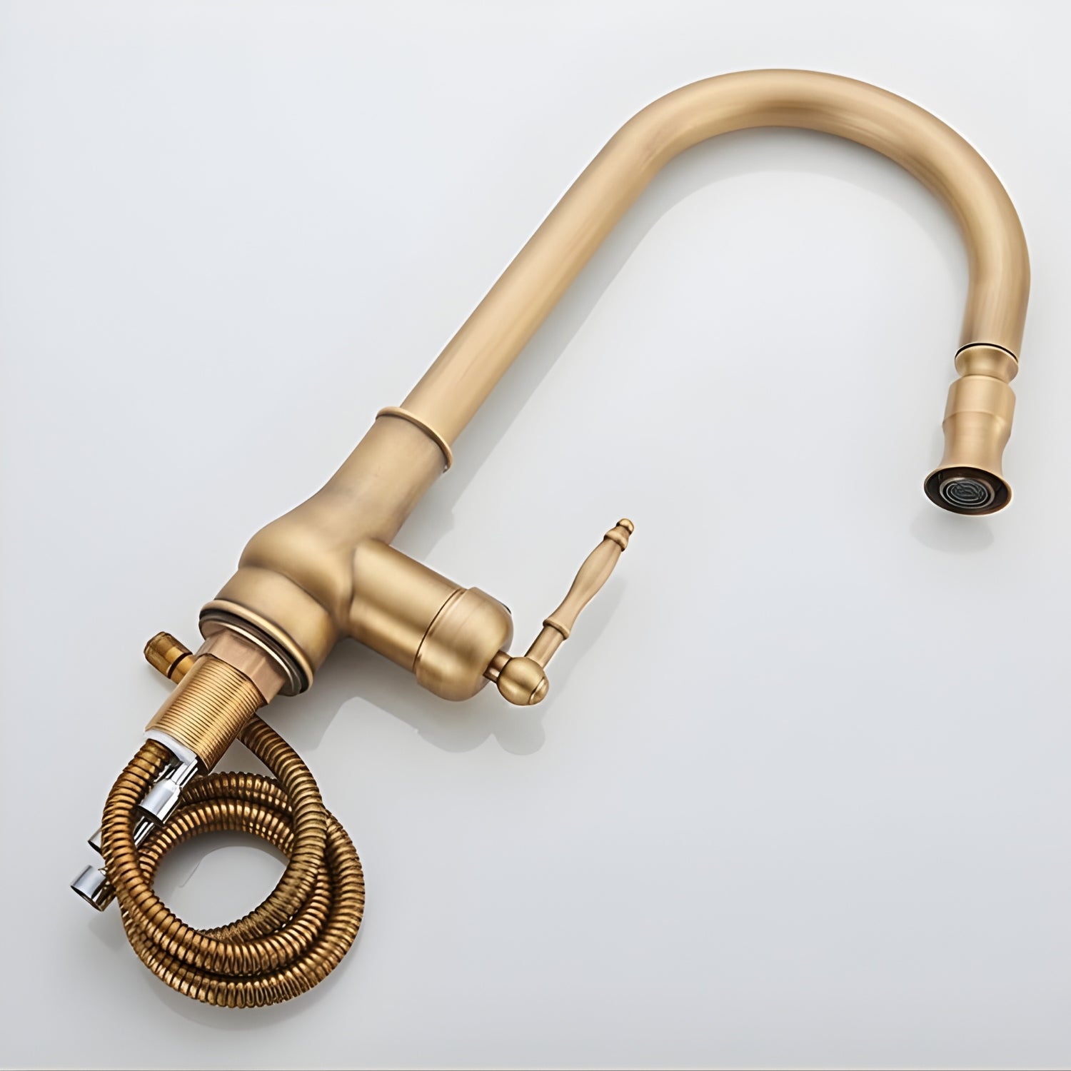 Dintel Antique Pull-Out Kitchen Faucet combines classic elegance with modern functionality. Its vintage design adds charm, while the pull-out spray head offers convenience. Built for durability, it’s a perfect blend of style and practicality for any kitchen.