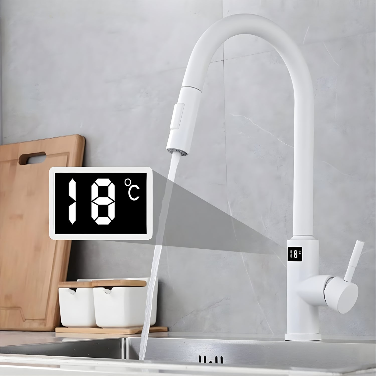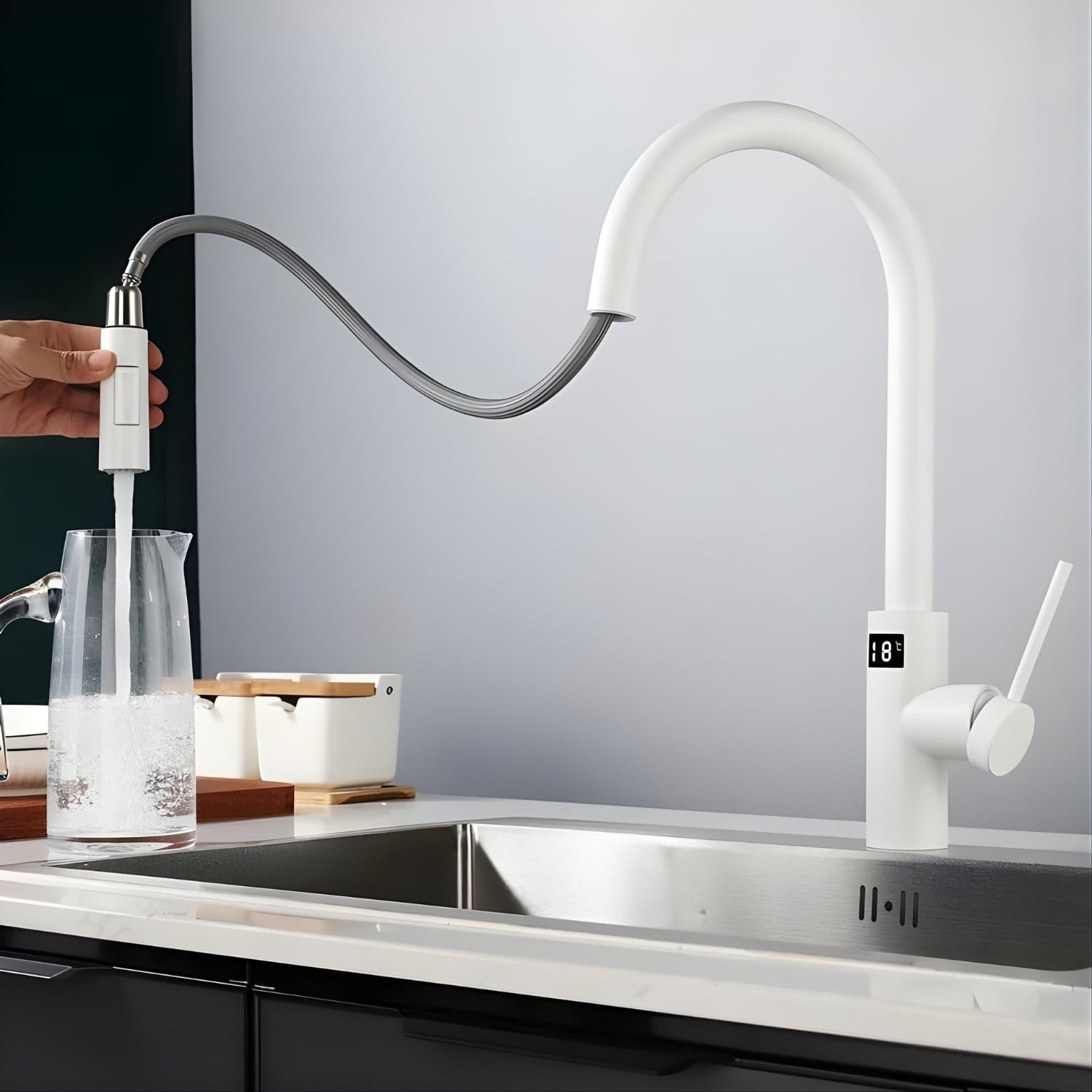 Experience a kitchen revolution with the Falkenberg Pro Touchless Pull-Out Kitchen Faucet. Crafted from high-quality, durable materials, this faucet seamlessly blends form and function, offering the perfect balance of elegance and utility. Its visible temperature display adds a touch of ritual to your daily routine, while the rotatable pull-out spout provides unmatched flexibility, making all-around, multi-angle cleaning a breeze.