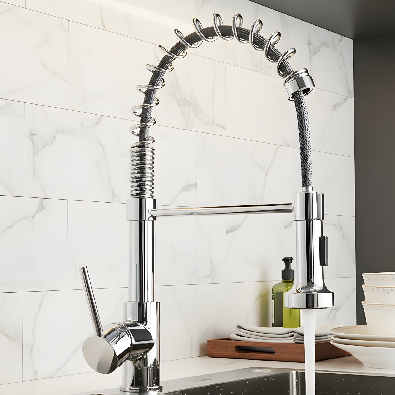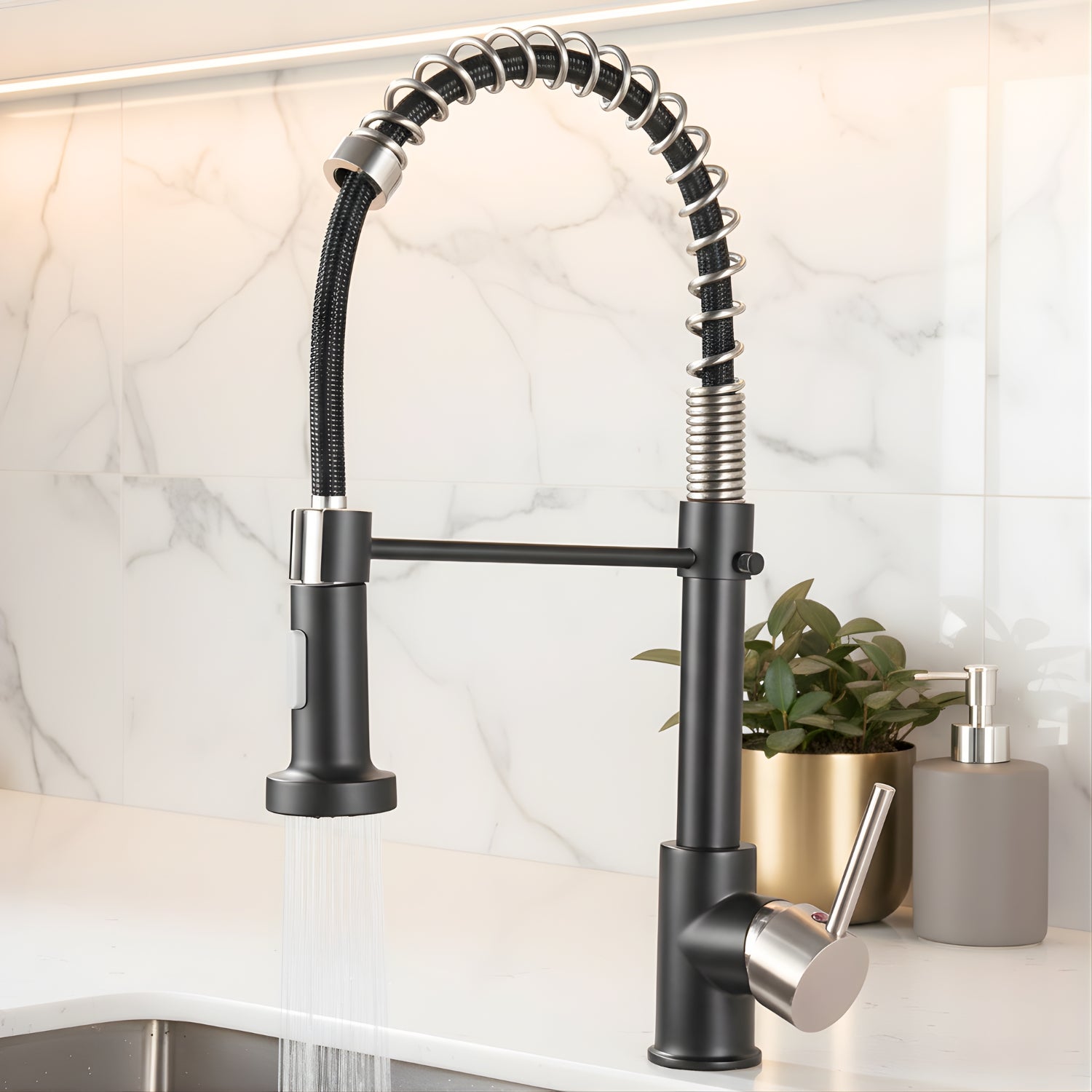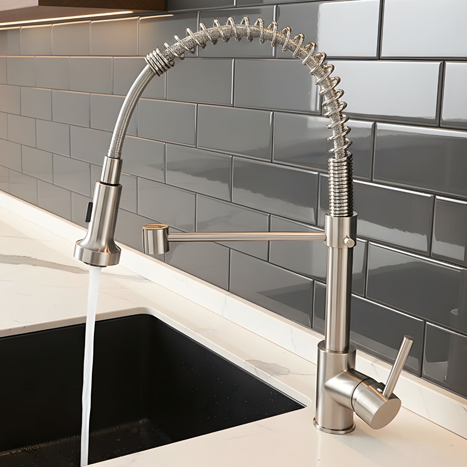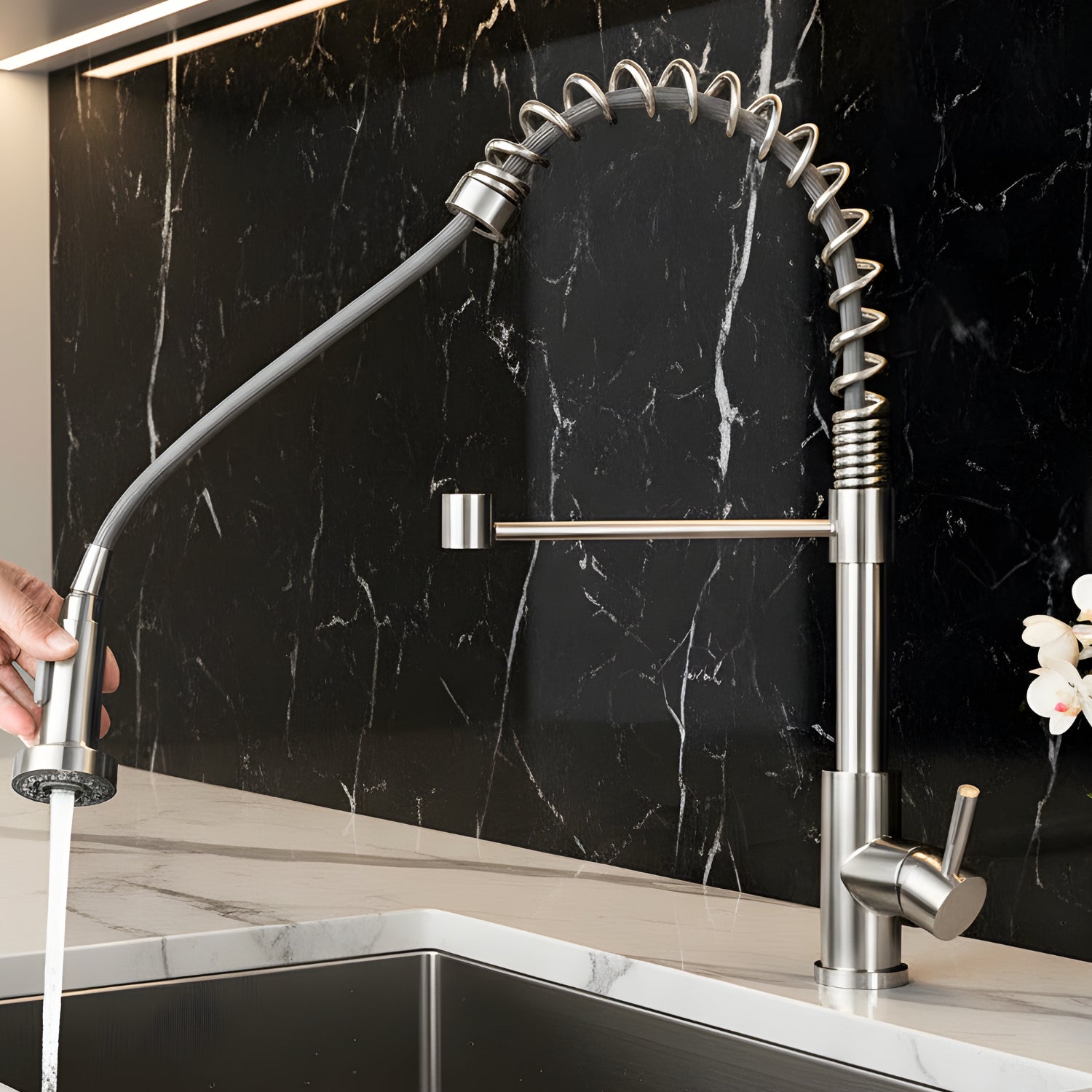 Single Hole Pre-Rinse Pull-Down Sprayer Spring Spout Kitchen Faucet