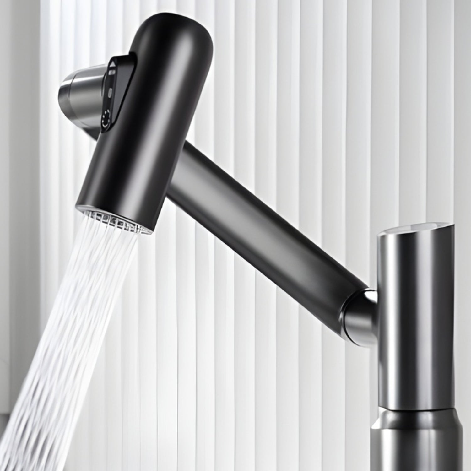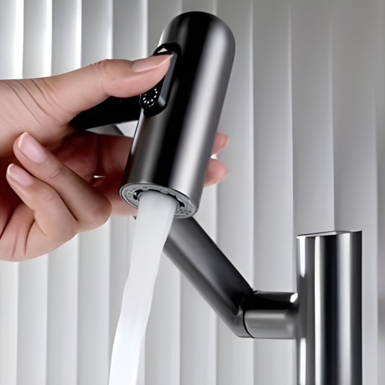 The Leiden takes versatility to the next level with its multi-jointed 1080-degree rotating arm. Unlike traditional fixtures, this faucet can be maneuvered to any angle, making it easy to rinse your face, wash your hair over the sink, or even clean the far corners of the basin. When not in use, it folds neatly into a compact, sleek profile, maximizing space while maintaining its sophisticated architectural aesthetic.